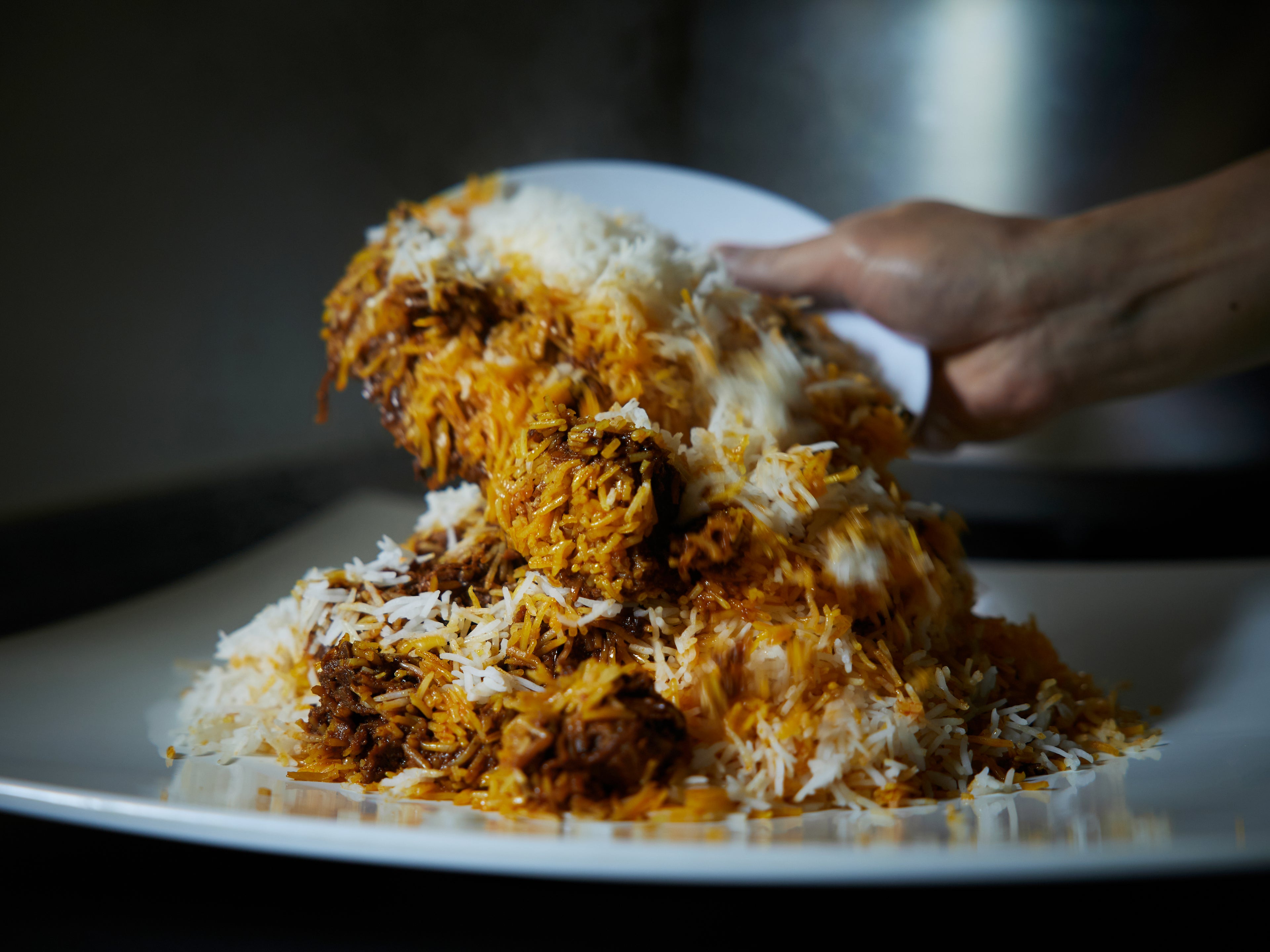 ビリヤニの王道にして、店の力量が試されるのがマトン。このミールキットでは、家庭で再現するのが難しい「骨付き肩肉の煮込み」に挑戦。煮込み工程の調理法を一から開発しました。この一皿で感じてほしいのは、マトンでしか出せない奥深さです。ぜひライタを添えて、最後まで食べ切ってください。